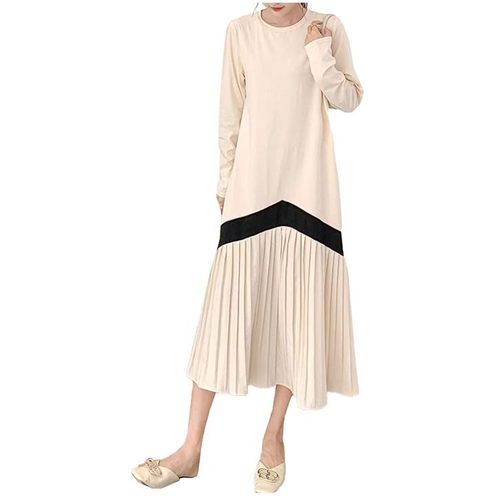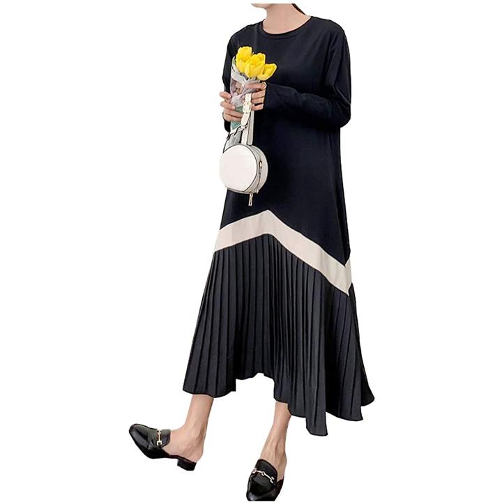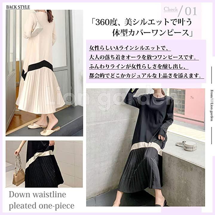 マキシ プリーツ ワンピース ロング 体型カバー ゆったり ふんわり M ~ XL レディース
