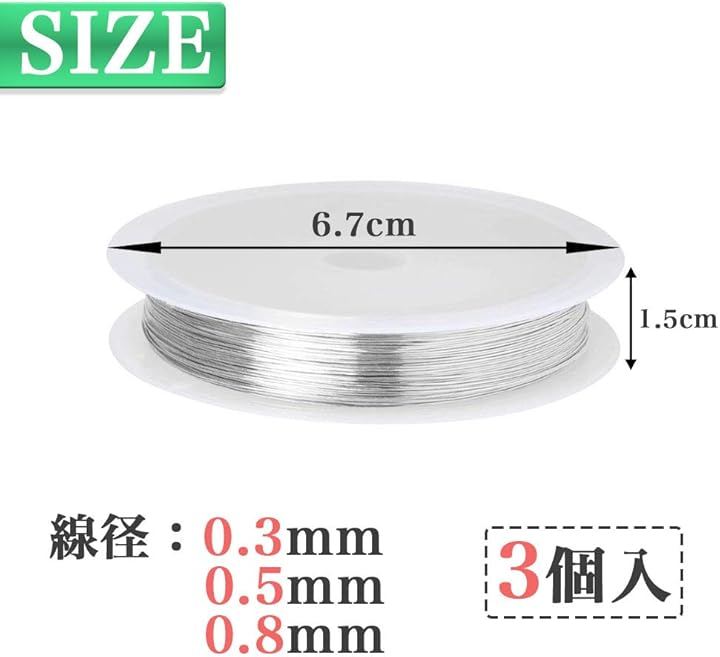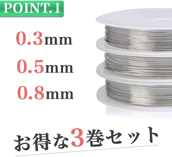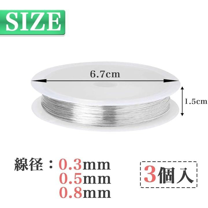 シルバーワイヤー 3巻セット 線径0.3mm 0.5mm 0.8mm ワイヤークラフト用