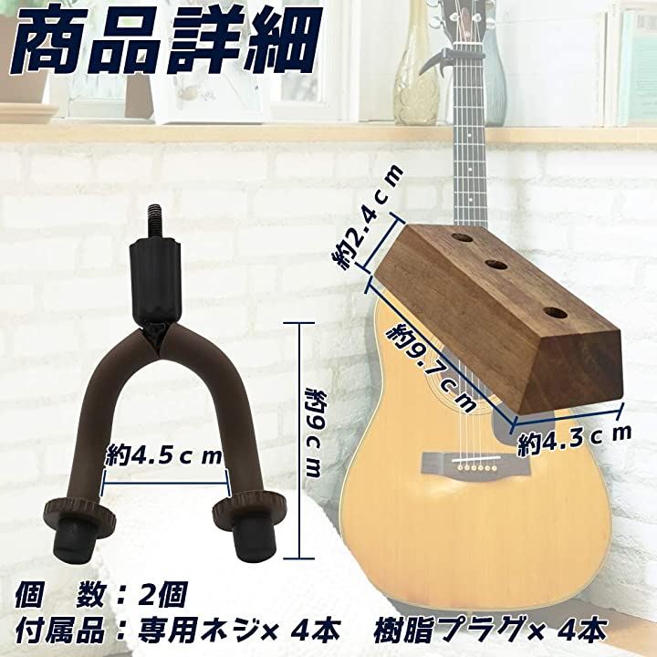 スタイリッシュ ウォールハンガー 2個セット ギター 収納 ホールド 壁掛け ギターフック ディスプレイ コレクション