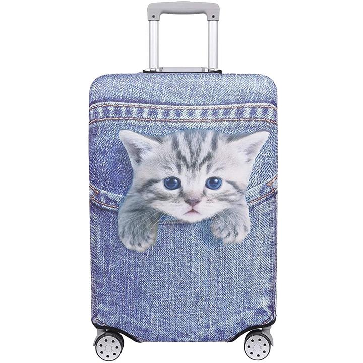 「こもれび屋」スーツケース 保護 カバー かわいい イヌ ネコ デニム トランクケース キャリーケース 伸縮 旅行 OD13 (猫・トラ(ブルー), L) |