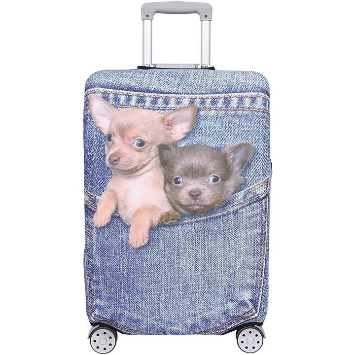 「こもれび屋」スーツケース 保護 カバー かわいい イヌ ネコ デニム トランクケース キャリーケース 伸縮 旅行 OD13 (犬・ チワワ(ブルー), XL) |
