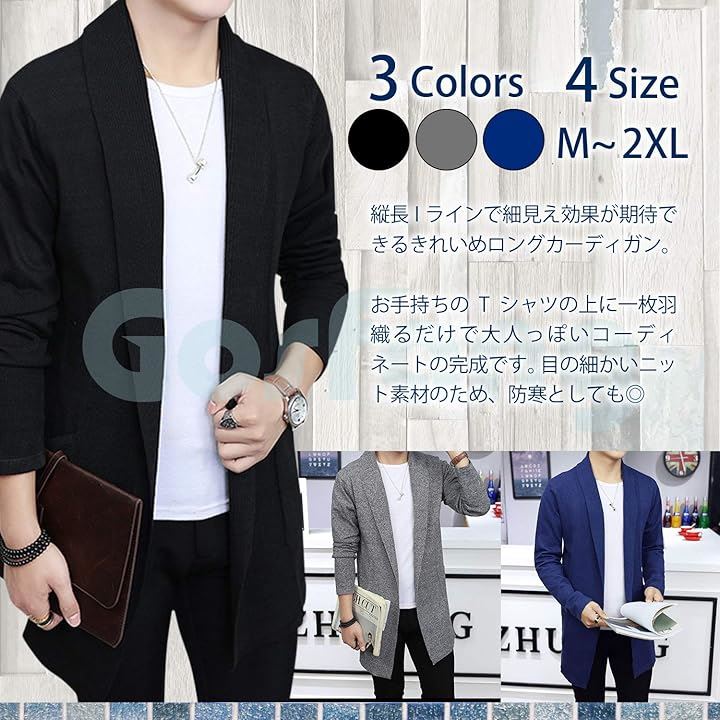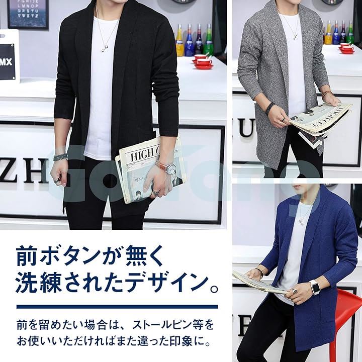 [ゴスファング] カーディガン メンズ ジャケット 長袖 ロングカーディガン 上着 前開き 大人 シンプル メンズ |