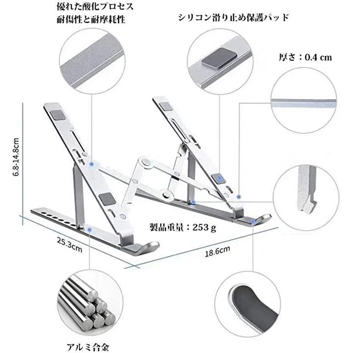 OBEST ノートパソコン スタンド 滑り止め 折りたたみ式 アルミ製 iPad/Macbook/Macbook Pro/ノートPC/タブレット/本/スマホ 10~17インチに対応