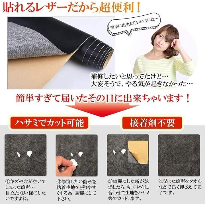 合皮シート ソファ補修 粘着 タイプ 137x50cm 程よい光沢/細やかな質感ベーシック リペアシート ブラック 補修シート シール 財布 バッグ 家具 修理 防水