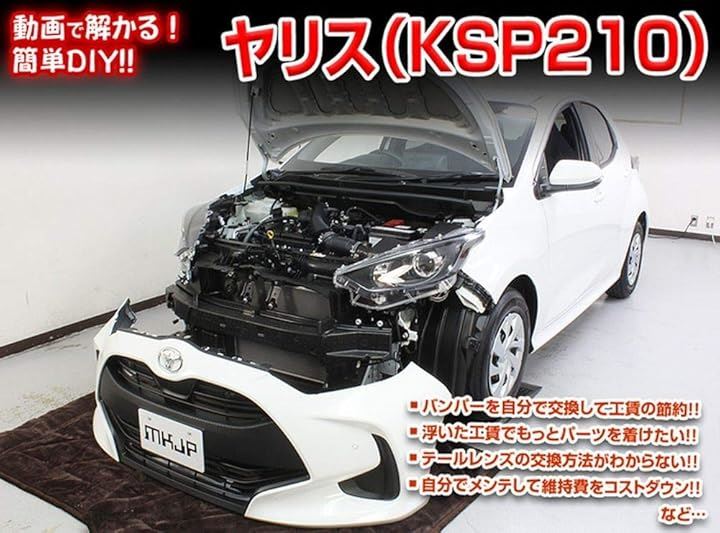 ・ルームランプ交換方法、ライト交換方法・ フロント(リア)バンパー交換方法・内張り交換方法などなど、ヤリス KSP 210 の 各種パーツの取外し方法や取付け方法、改造やチューニングを解説したDVD。