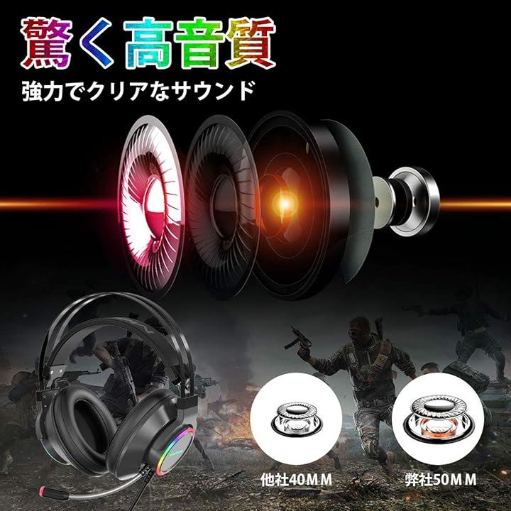・「高音質と高性能」:高精度の40mmマグネットドライバを使用しているゲーミグヘッドセット。
