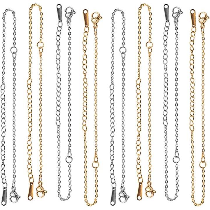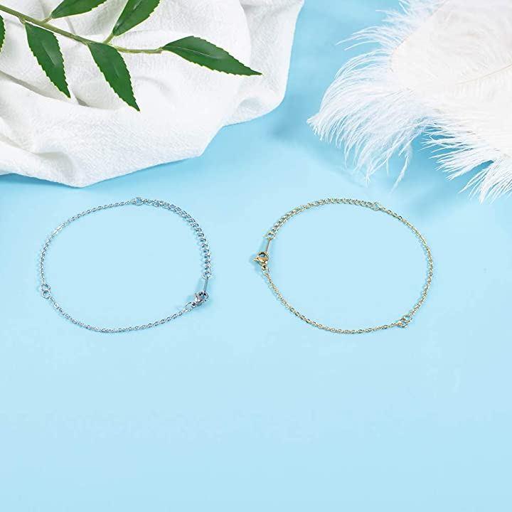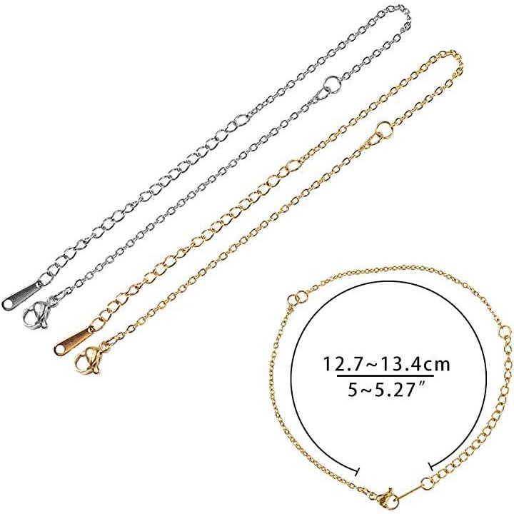 10本 2色 12.7~13.4cm 調整可能ブレスレット 201ステンレス製ブレスレット ケーブルチェーン 留め金付き 厚さ1.5mm