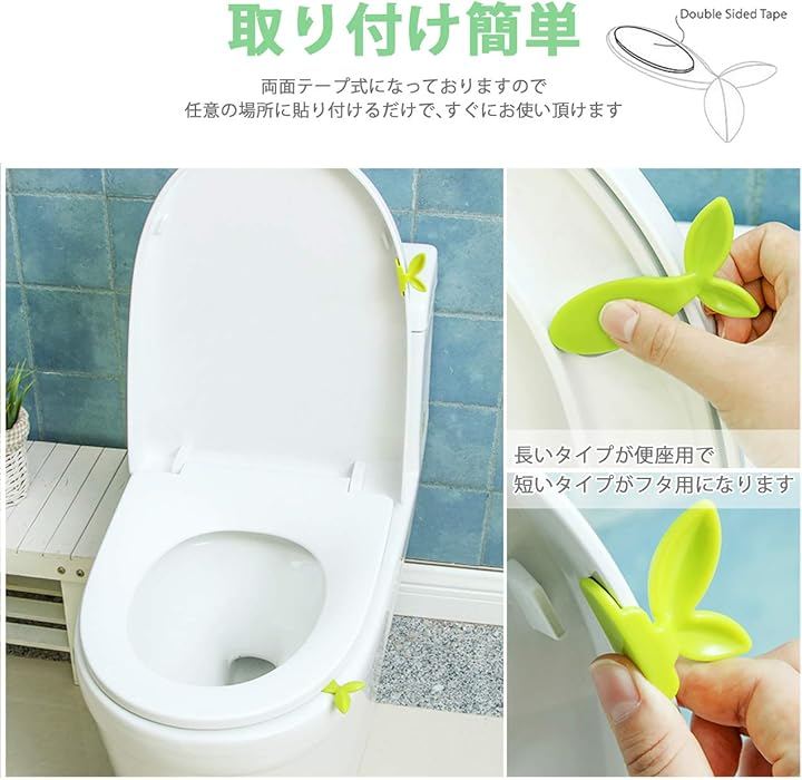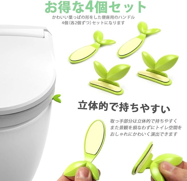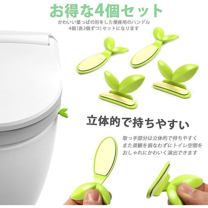 便座 取っ手 取手 とって ハンドル 4個 開閉便利 手が汚れない 清潔 衛生的 トイレ用品 両面テープ式 葉っぱ型