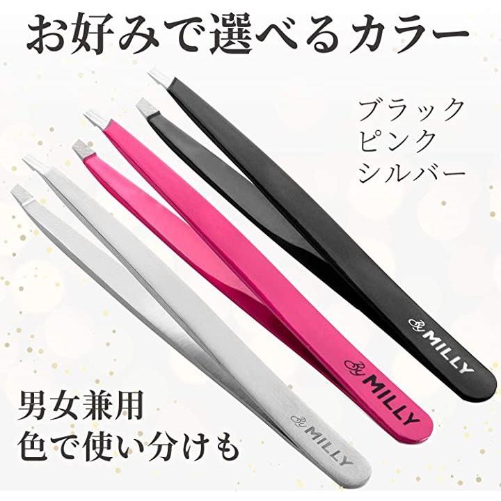 毛抜き By Milly 斜め角度で精密 100%ステンレス製 プロ職人仕様全米ロングセラー商品 眉毛 ムダ毛 ピンセット ノンストレス脱毛 メンズ レディース