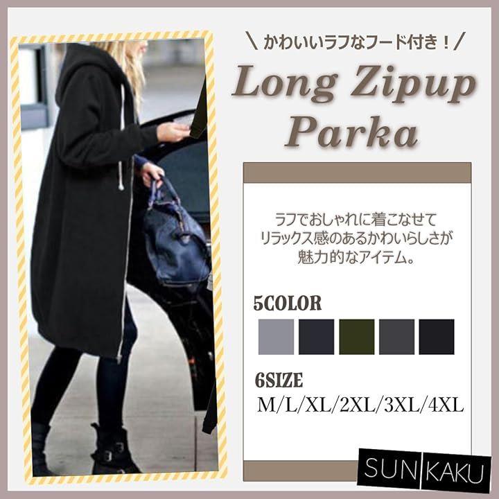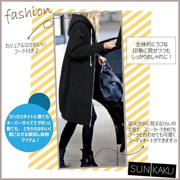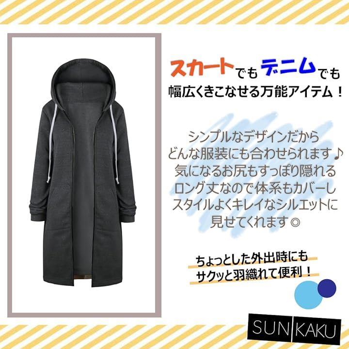 SUNKAKU レディース パーカー ロング ジップアップ フード 長袖 オーバーサイズ 大きいサイズ ゆったり カジュアル 長袖フード付き トレーナー ジャージ スウェット 薄手 裏起毛 ロング丈