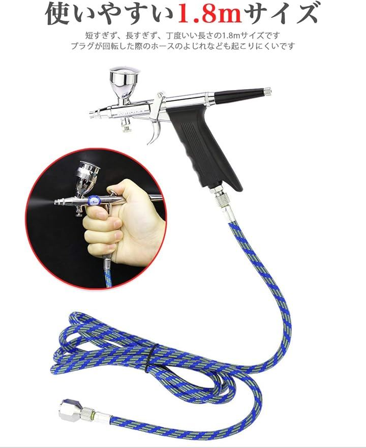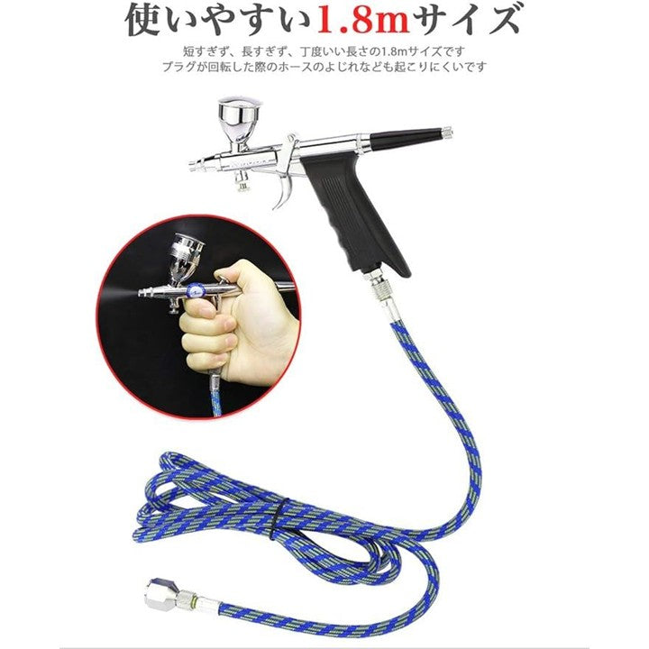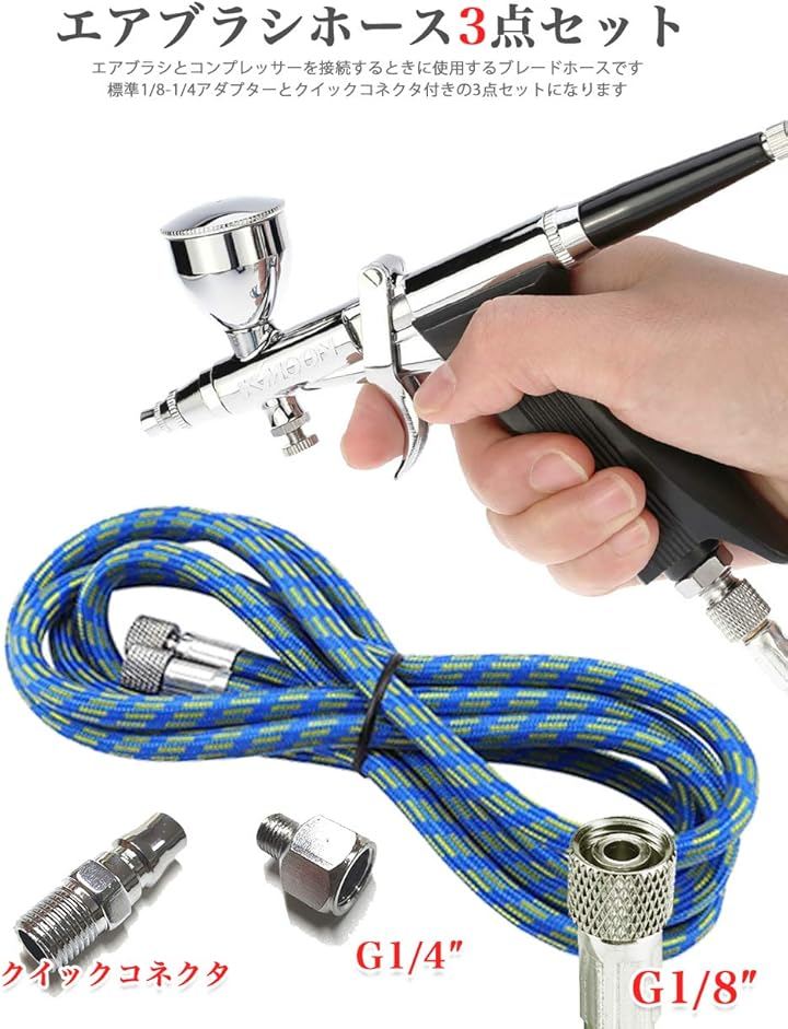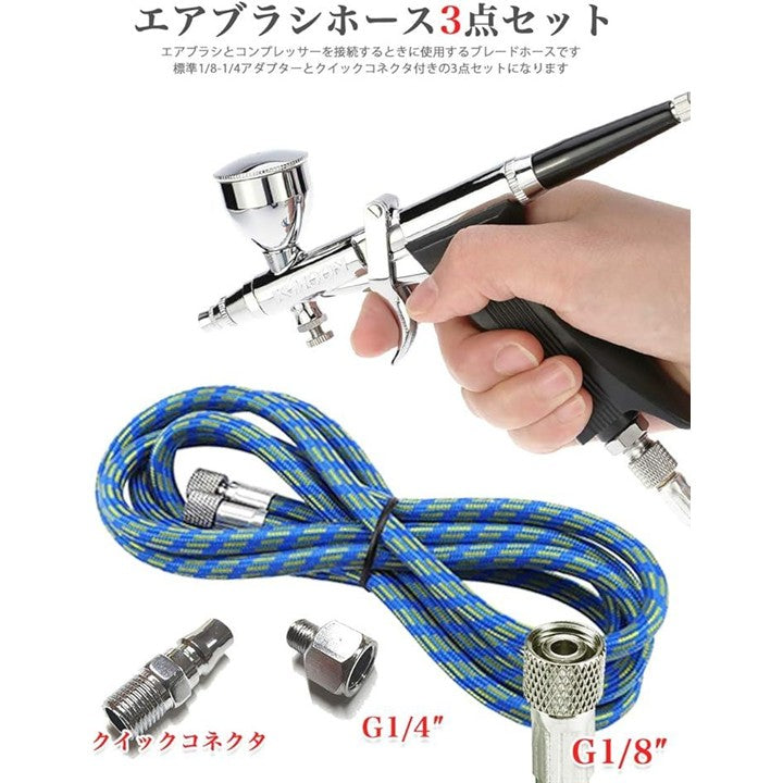 エアブラシ ホース 1.8m ブレードホース 1/8 1/4 フィッティング ジョイント付き 3点セット