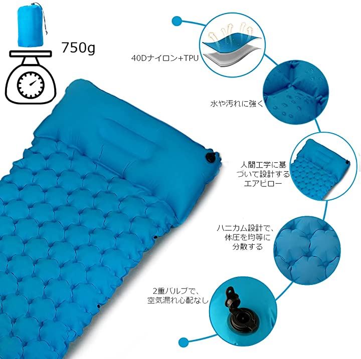 アウトドア キャンプマット エアーベッド エアーバッグ充気