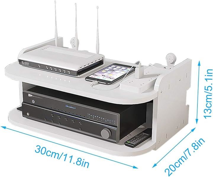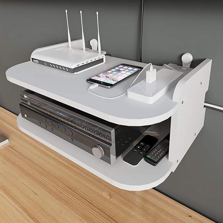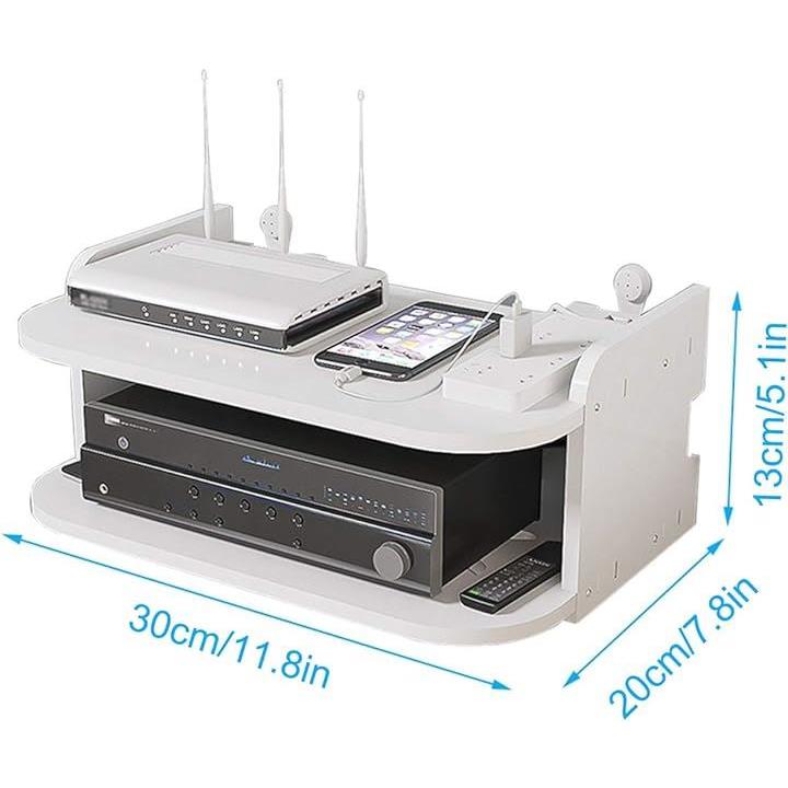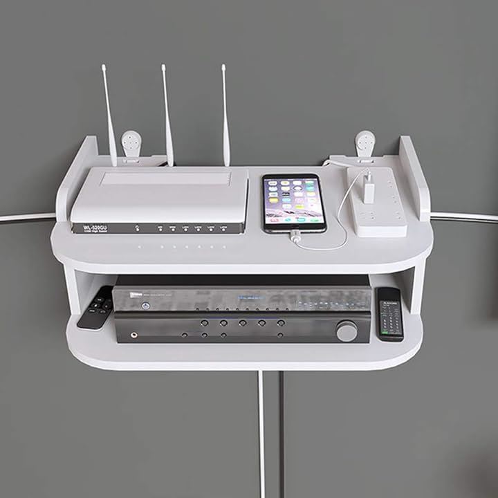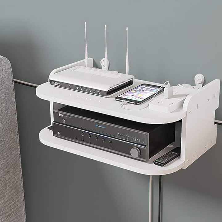 2層TVセットトップボックスラック 壁に取り付けられた棚プロジェクターブラケットは居間および寝室で使用されます、 白い
