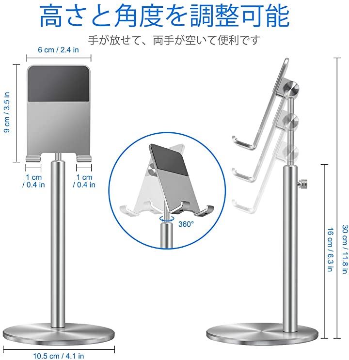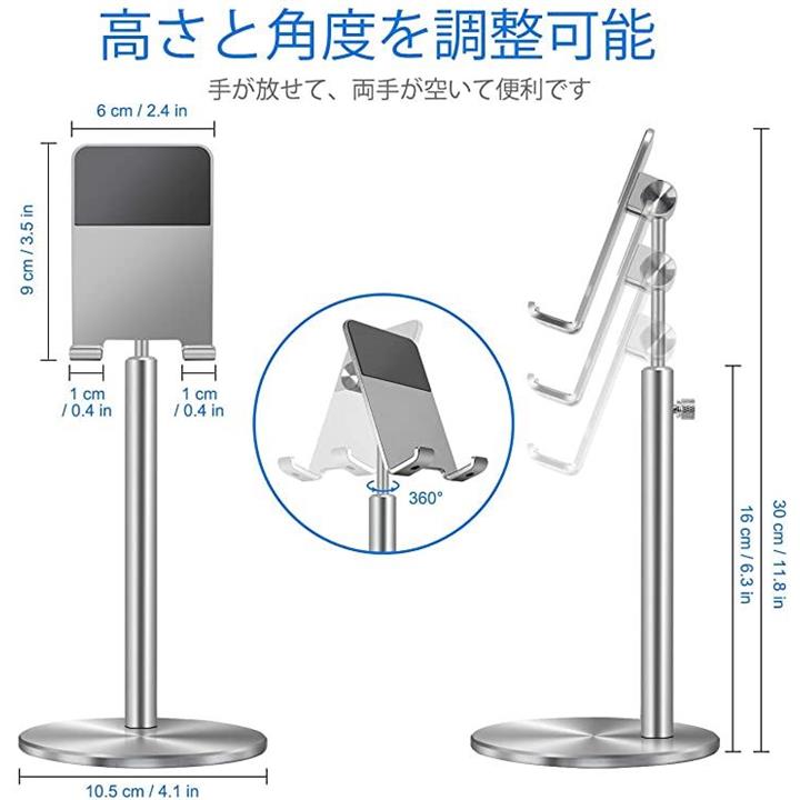 互換品タブレットスタンド スマホスタンド 卓上 角度と高さ調整可能