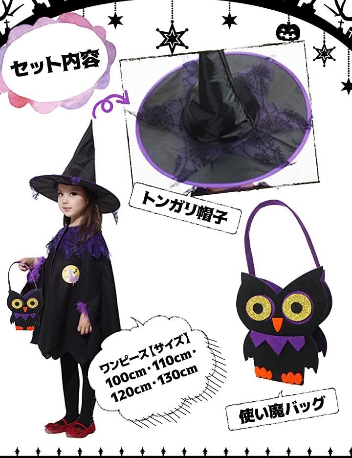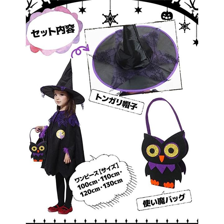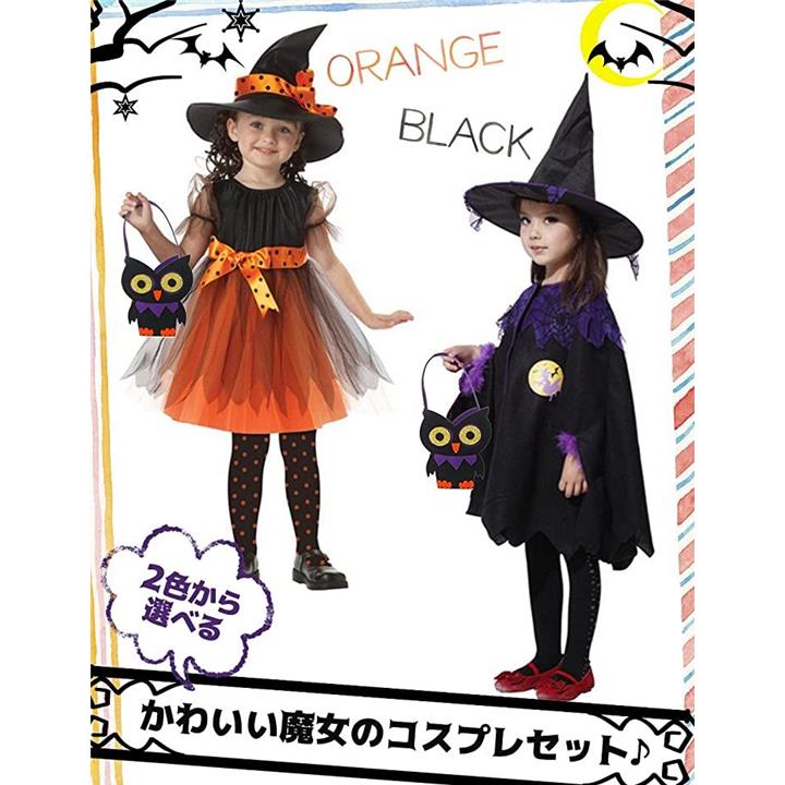 使いまバッグ付き 子供 魔女 コスプレ 仮装 衣装 ハロウィン 帽子 ワンピース 女の子