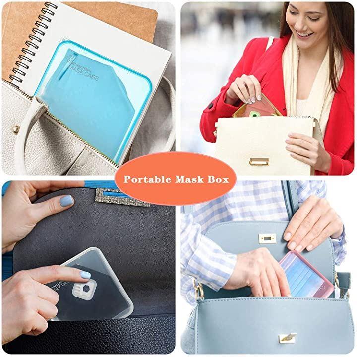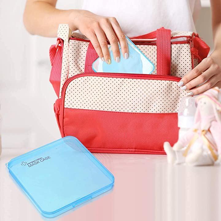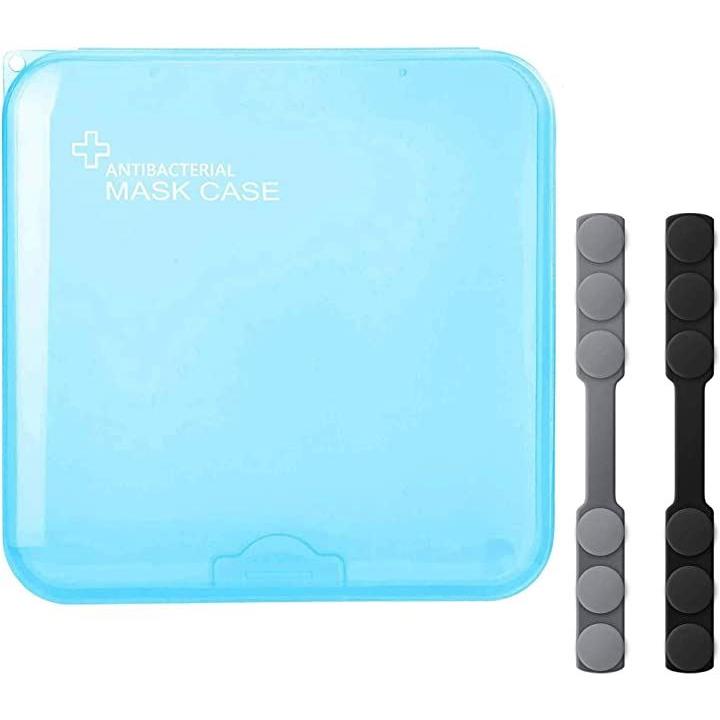 互換品マスクケース 携帯用 軽量 防塵 防湿 かわいい 1Pcs マスクケース+2マスク用フックベルト ブルー