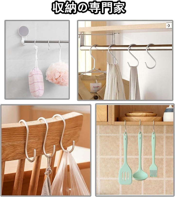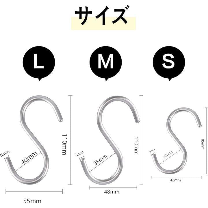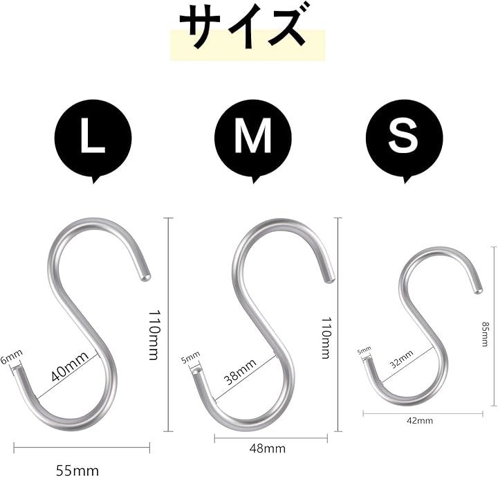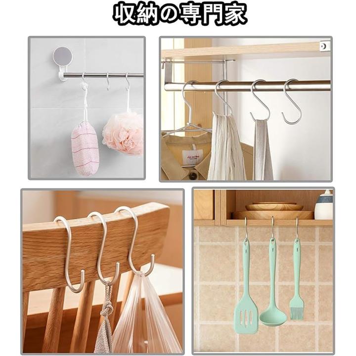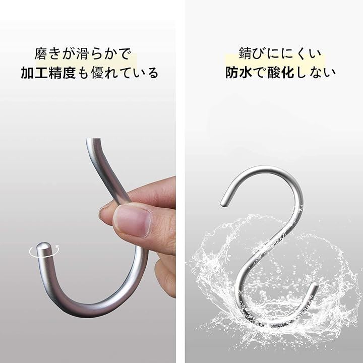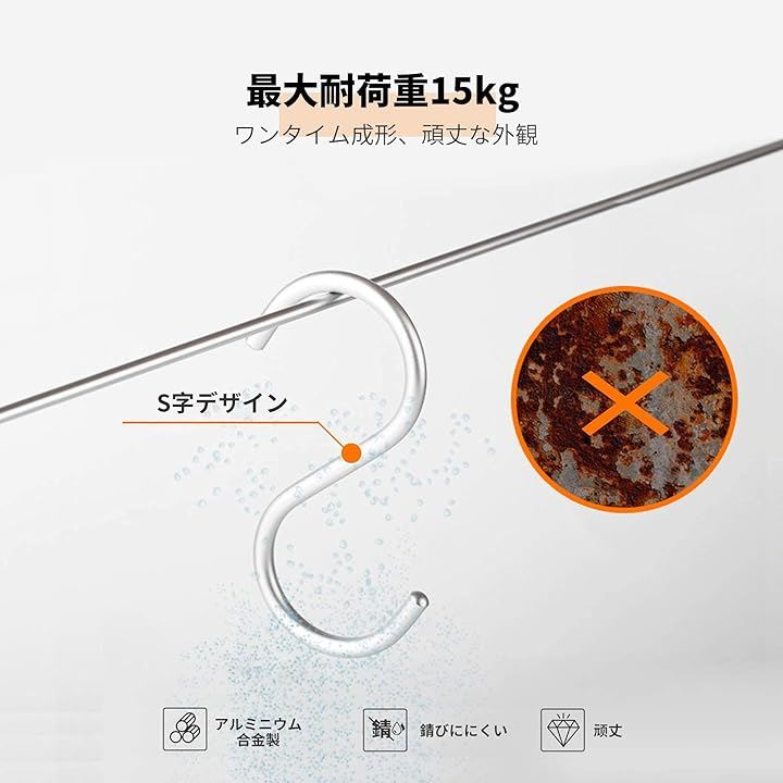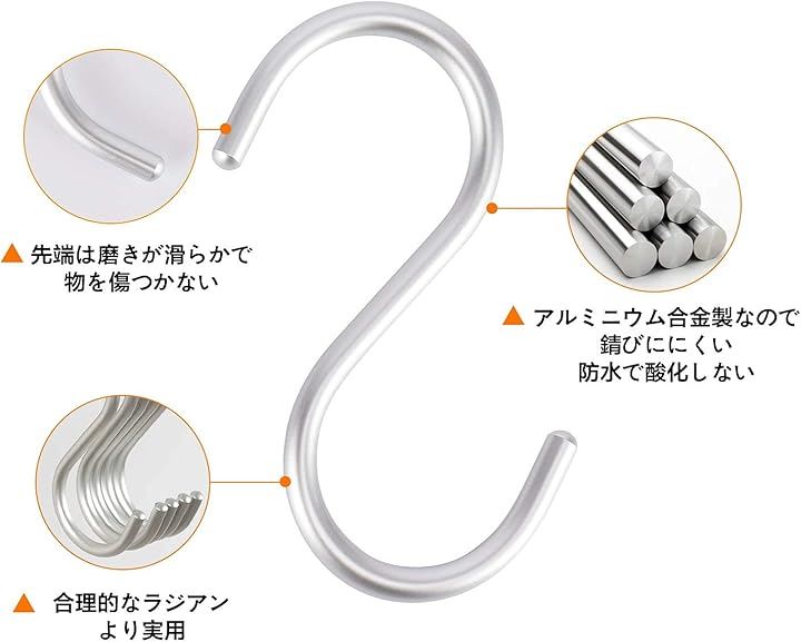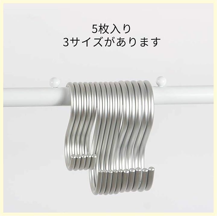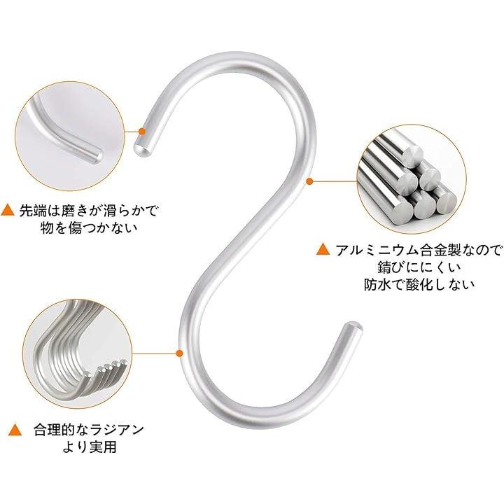 S字 汎用フック 耐荷重15kg 5枚セット エスフック 吊り下げ カーテンかけ 小物掛け 落ちない おしゃれ 防錆 アルミニウム合金製 丈夫
