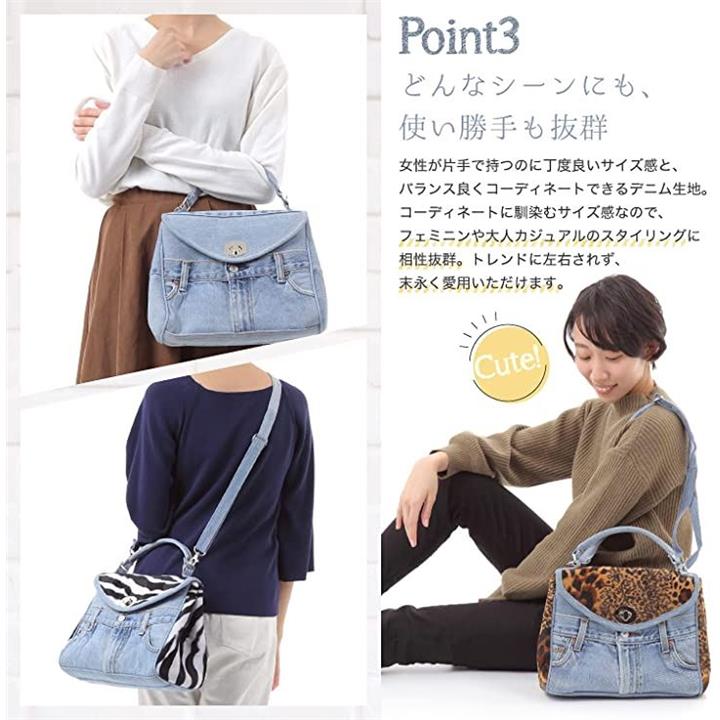 ノーブルライリー デニム バッグ ショルダー ハンドバッグ 斜めがけ 2way レディース レオパードブラウン
