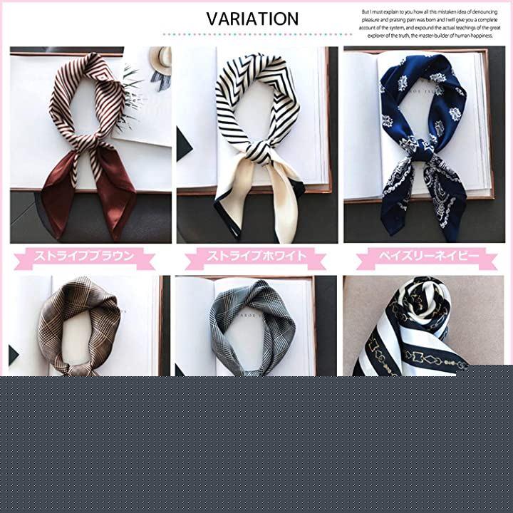 [ワン アンブ] スカーフ レディース 春 シルク調 正方形 薄手 UVカット お洒落 小物 70x70 cm ストライプホワイト |
