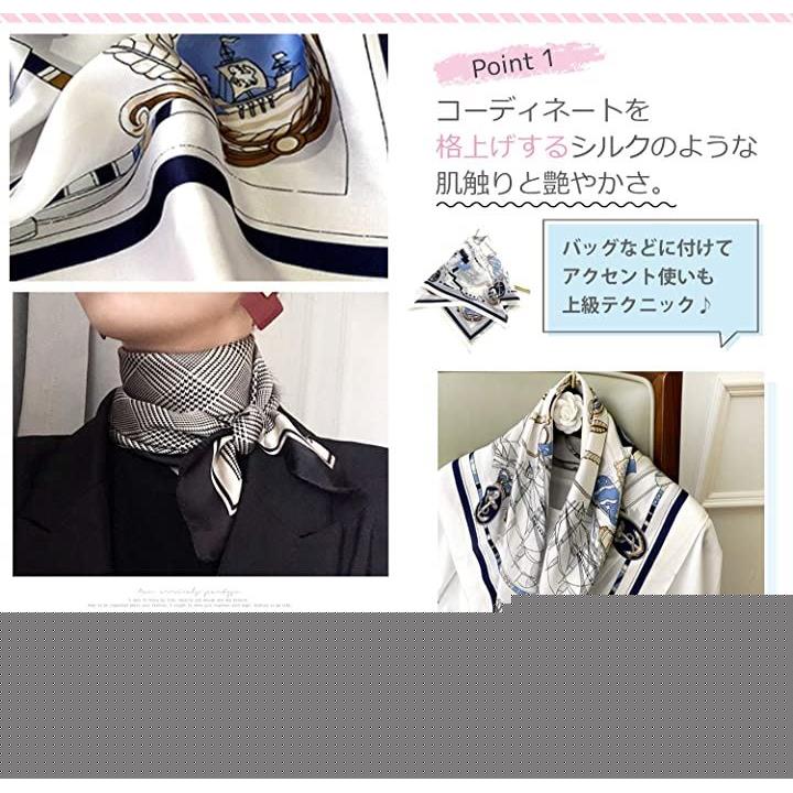 [ワン アンブ] スカーフ レディース 春 シルク調 正方形 薄手 UVカット お洒落 小物 70x70 cm マリンホワイト |