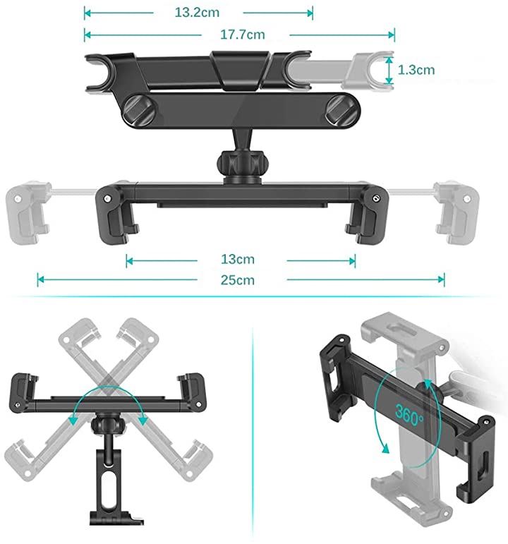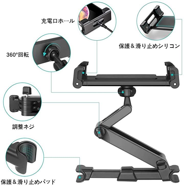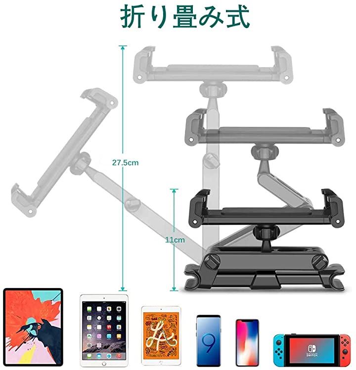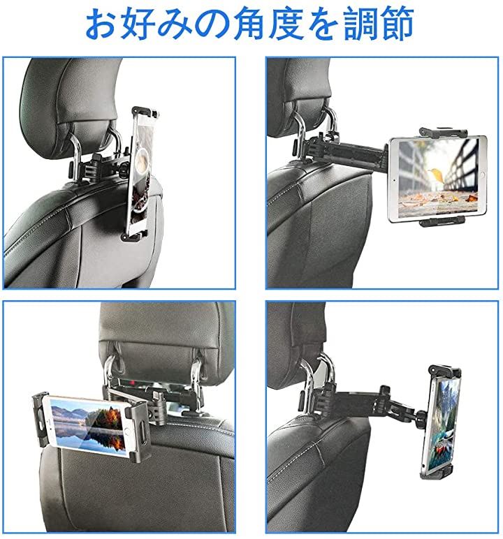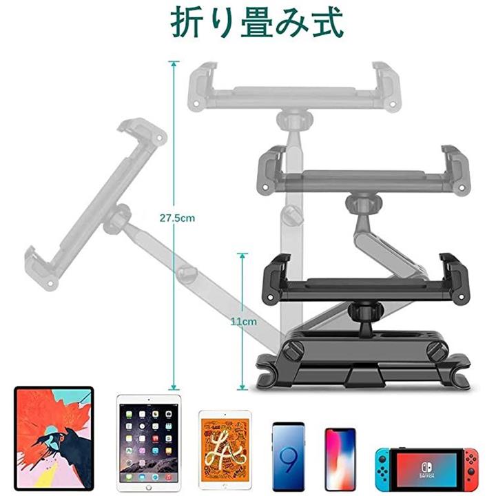 互換品2021 MOVENTAタブレット ホルダー 後部座席用 ヘッドレスト取付 伸縮アーム 折り畳み式 タブレット&スマートフォン兼用