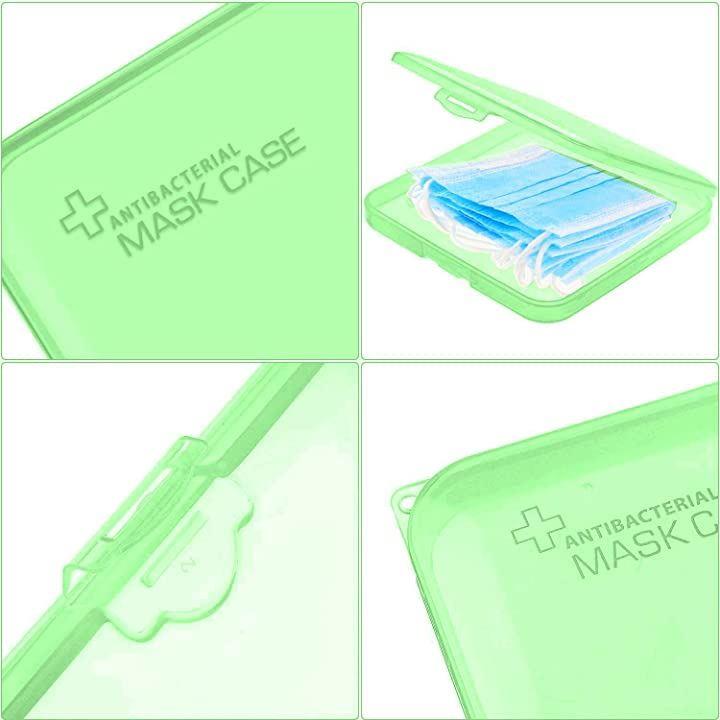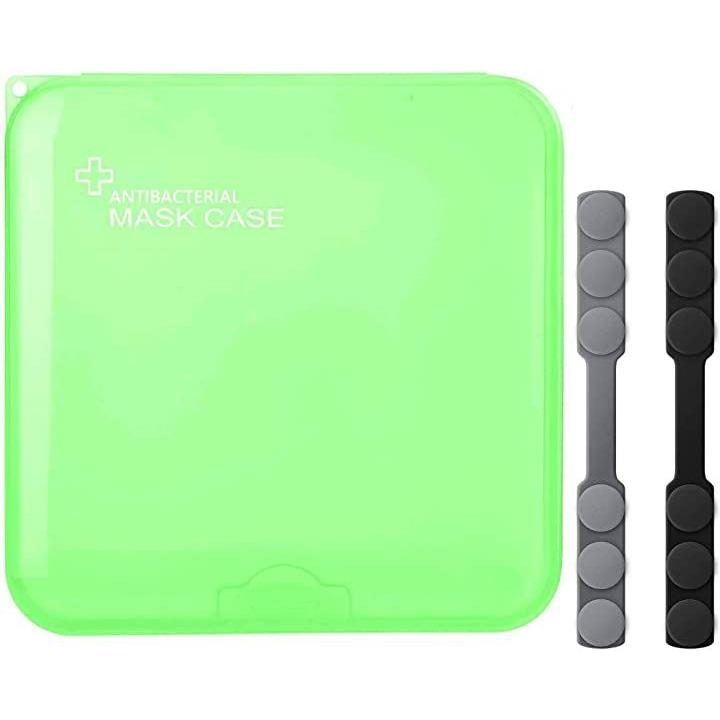 互換品マスクケース 携帯用 軽量 防塵 防湿 かわいい 1Pcs マスクケース+2マスク用フックベルト グリーン