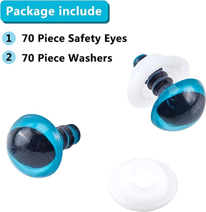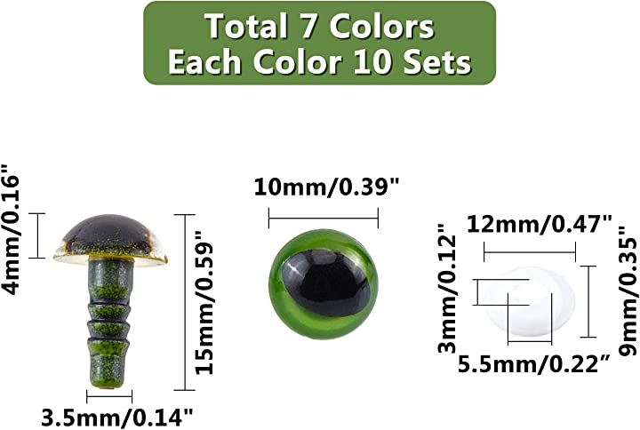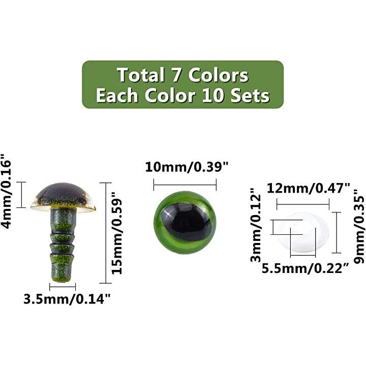 さし目 ぬいぐるみ目 動物 人形 7色 10mm セーフティアイ 70個 ウォッシャー付き