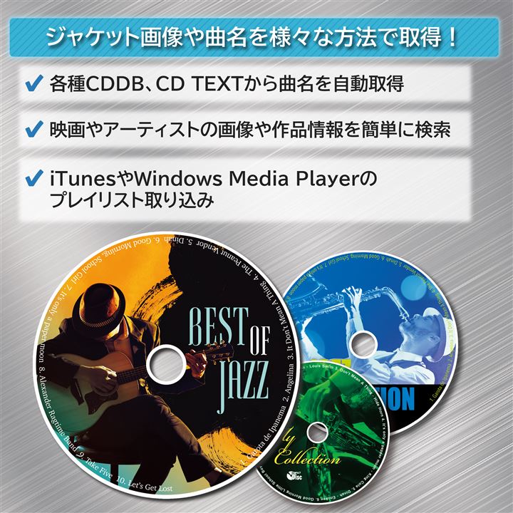 各種CDDB、CD TEXTから取得したり、iTunesやWindows Media Playerのプレイリストから取得したり、Web検索機能を利用できます。