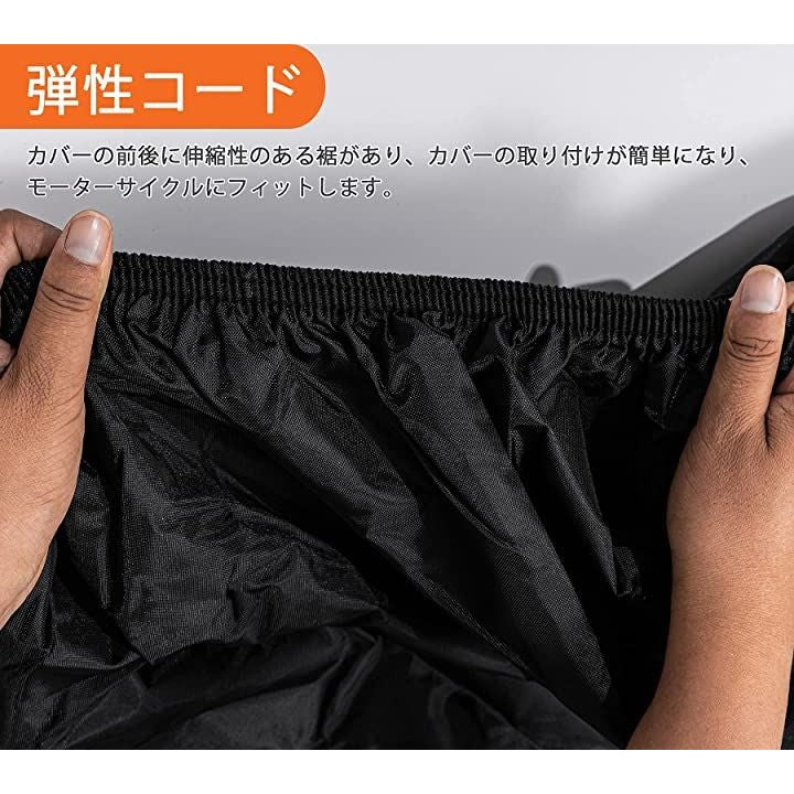 単車カバーの前後には強いゴムがあり、バイク用カバーとタイヤをしっかりと覆うことができます。