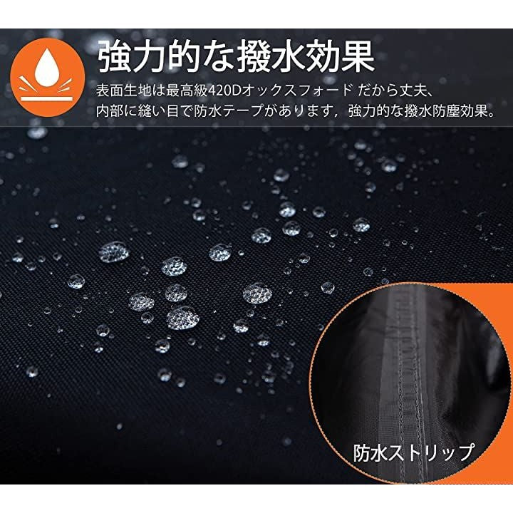 420Dオックスフォード防水素材と防水テープがこのカバーの防水性と耐久性を高めています。