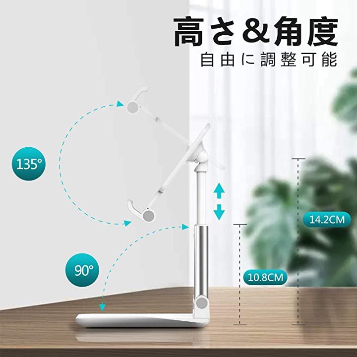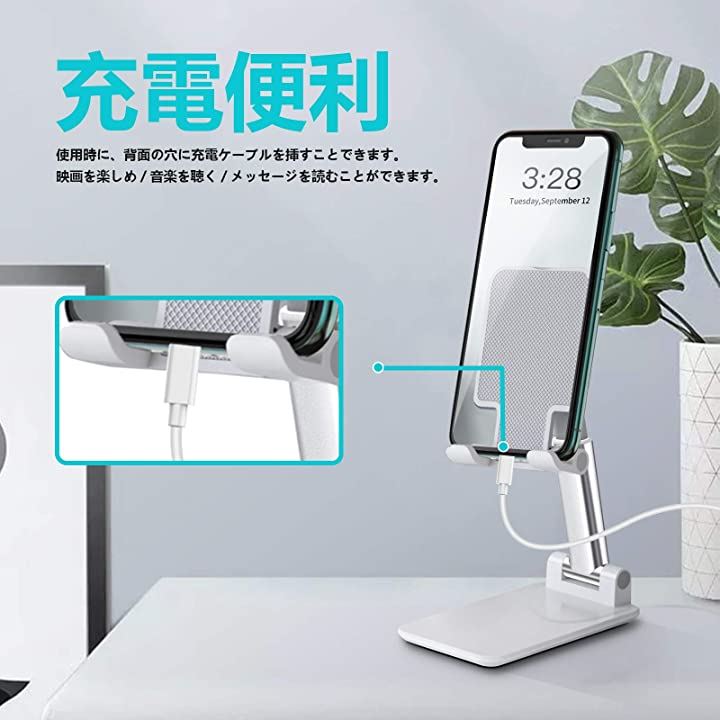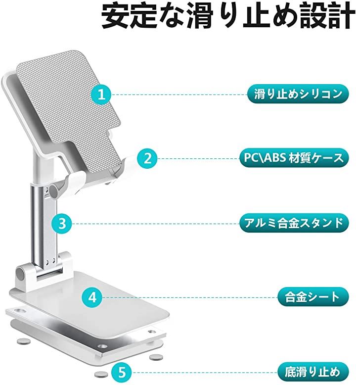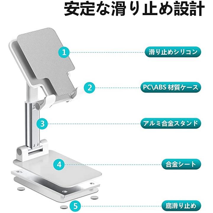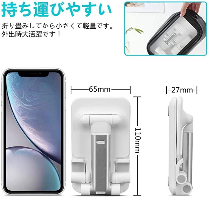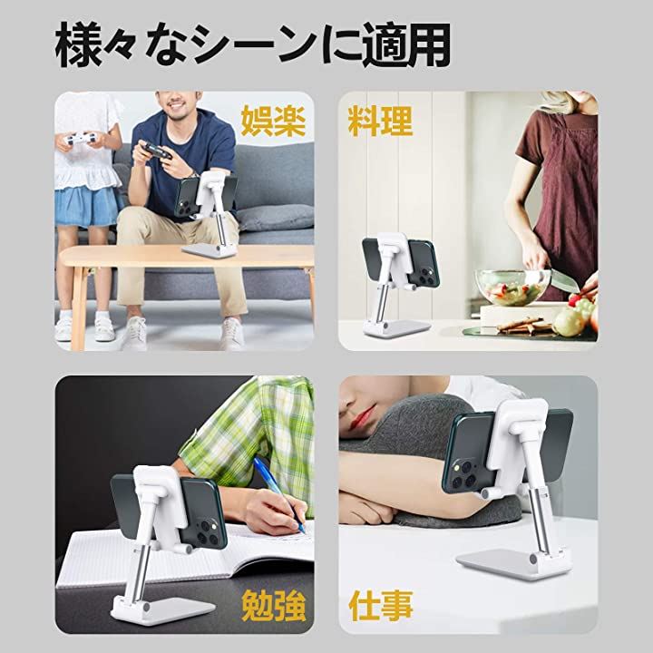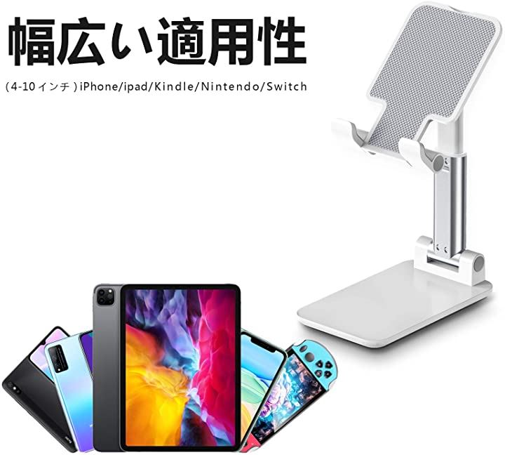 互換品 スマホスタンド 携帯スタンド タブレット ホルダー 折り畳み式 高度調整可能 収納便利 ホワイト