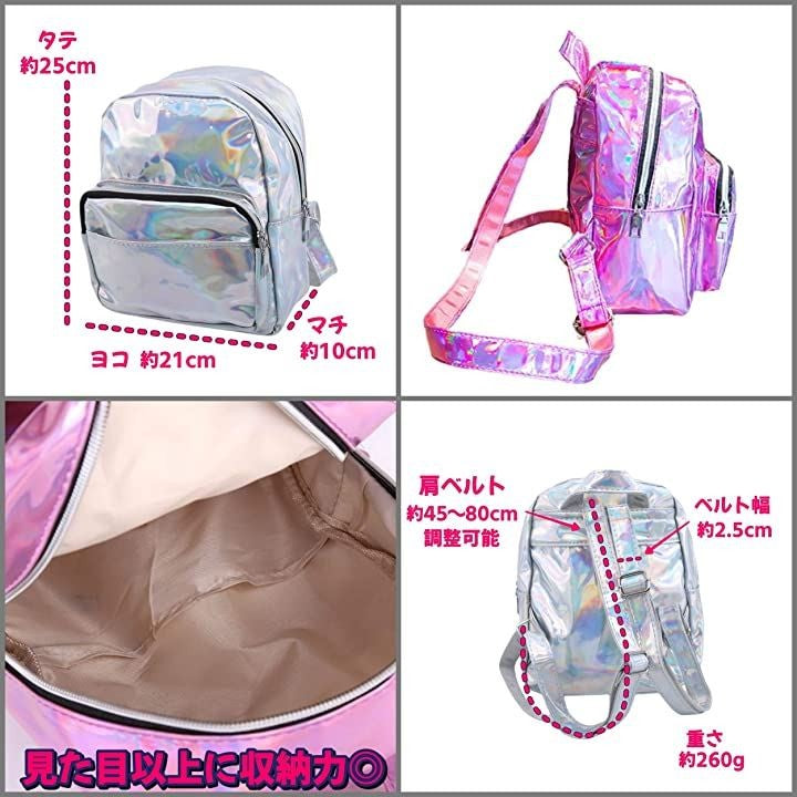 リュック レディース メタリック 小さめ シルバー ピンク きらきら 軽量 ホログラム