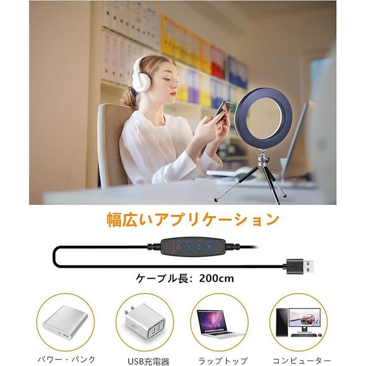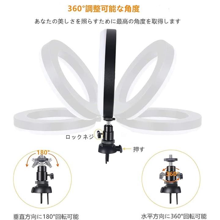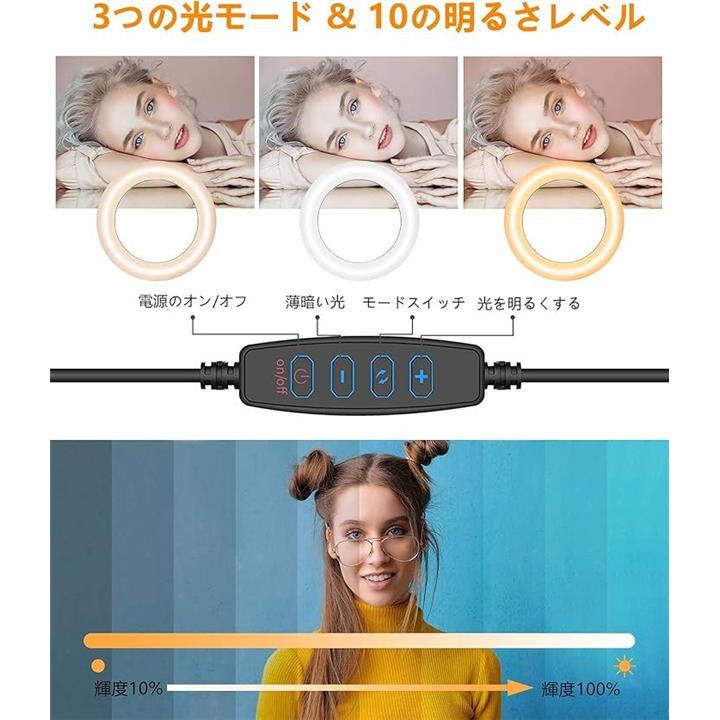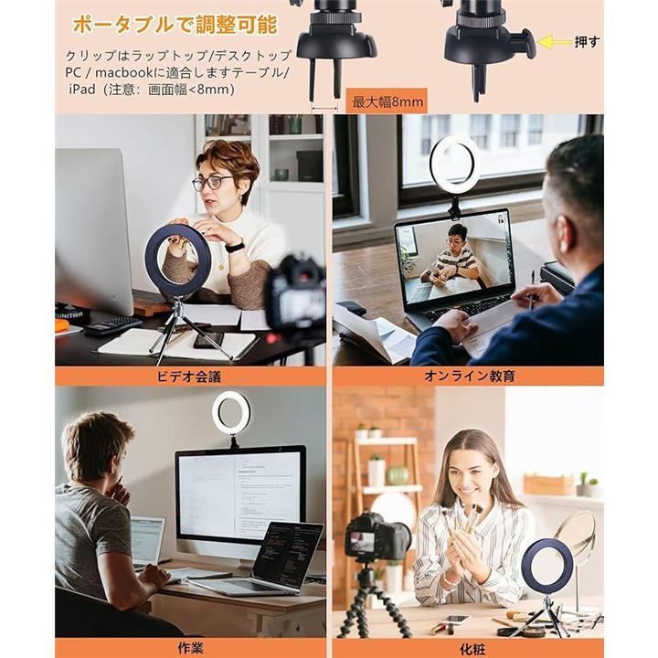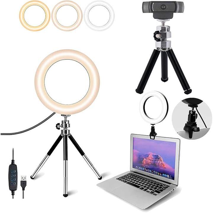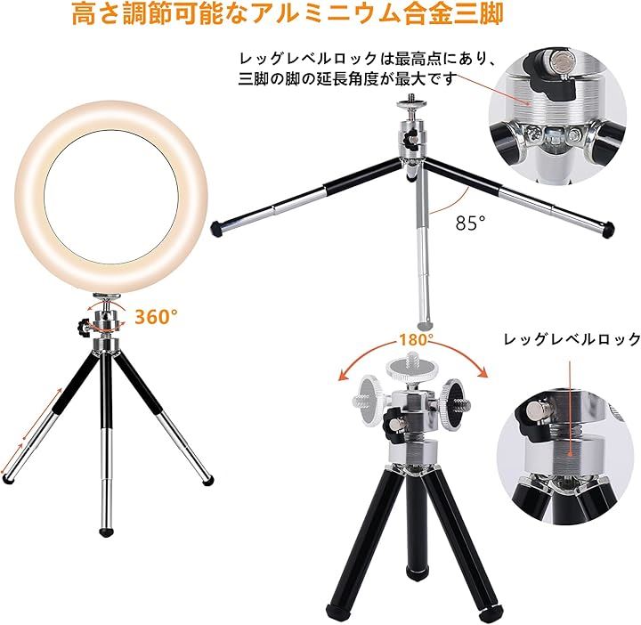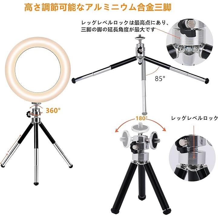 LEDリングライト 自撮りライト 三脚 6.3インチ 会議照明 3色モード 10段階調光 オンライン会議 USB卓上スタンド