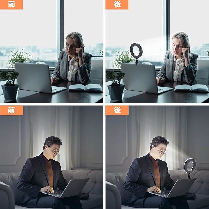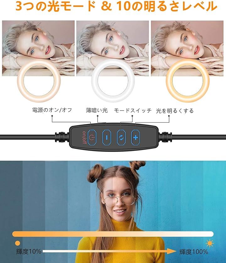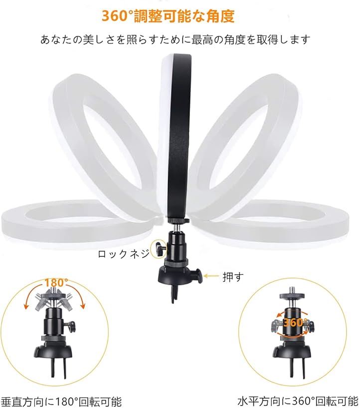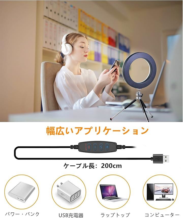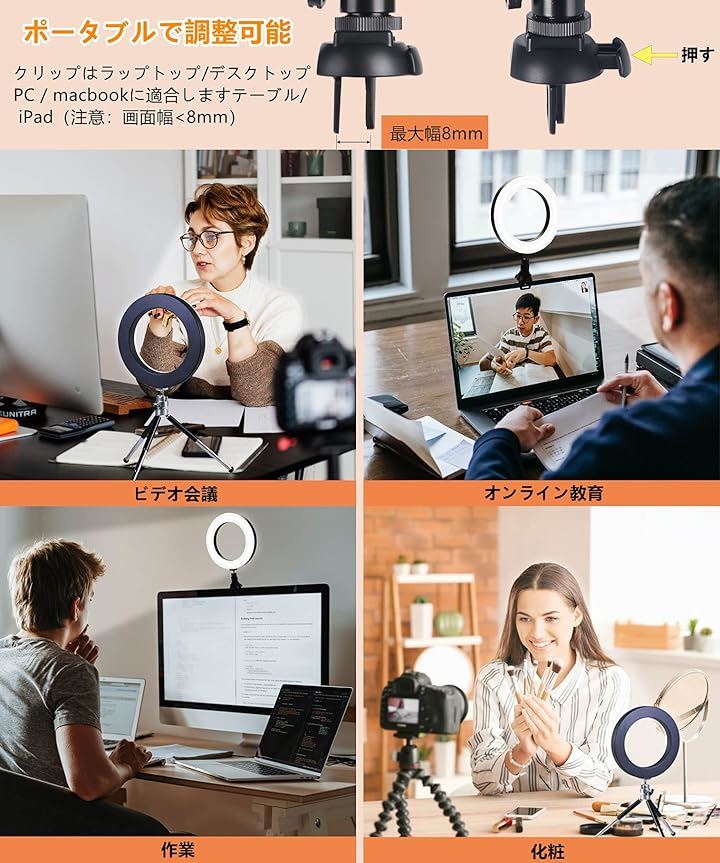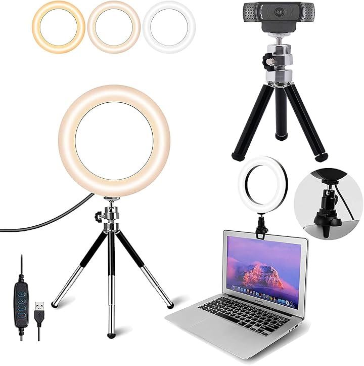 LEDリングライト 自撮りライト 三脚 6.3インチ 会議照明 3色モード 10段階調光 オンライン会議 USB卓上スタンド
