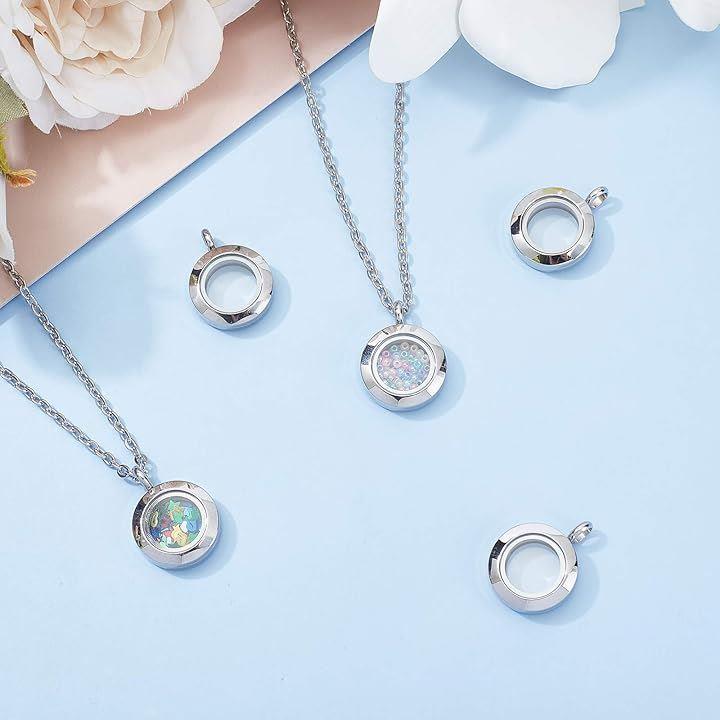 チャーム ロケットペンダント 写真入れ ネックレス 銀色 金属色 メタルチャーム 金属チャーム ジュエリー 垂れ飾り アクセサリーパーツ