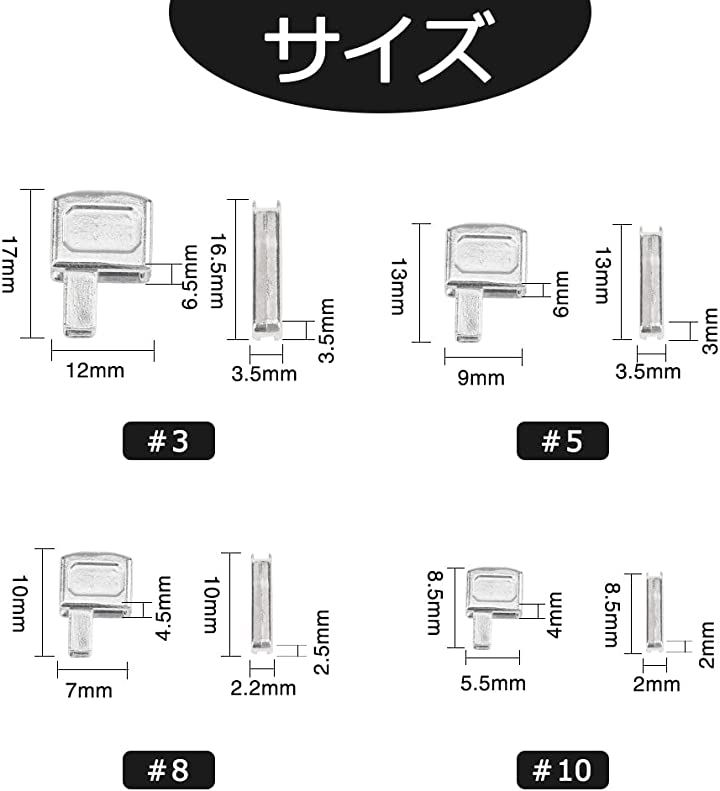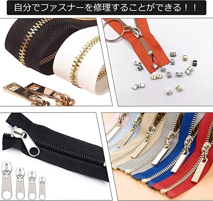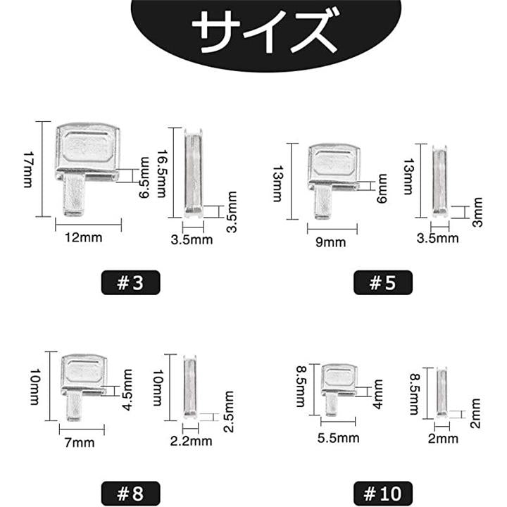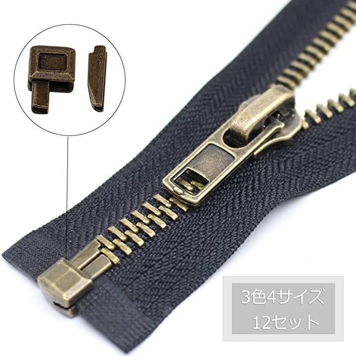 3色 ファスナー メタル ジッパー 4サイズ ラッチ スライダー リテーナー 挿入 #3#5#8#10