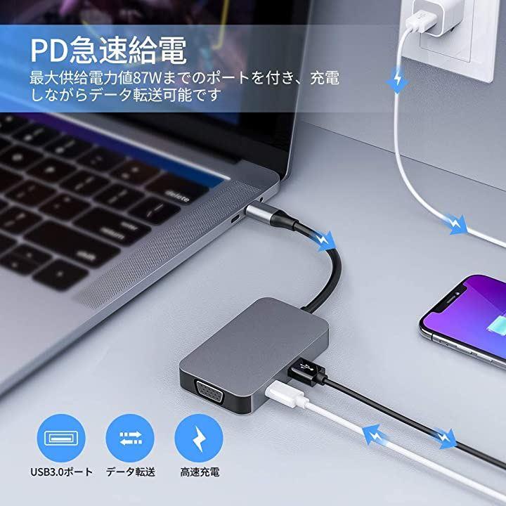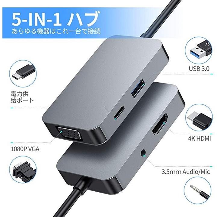 互換品USB C ハブ 5-in-1 USB 変換 アダプタ グレー |
