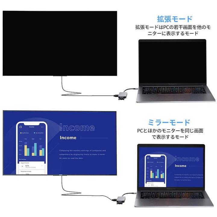 ・「4K解像度」HDMIのみ出力する場合:最大4Kx2K@30Hz、VGAのみ出力する場合:最大1920x1080@60Hz。