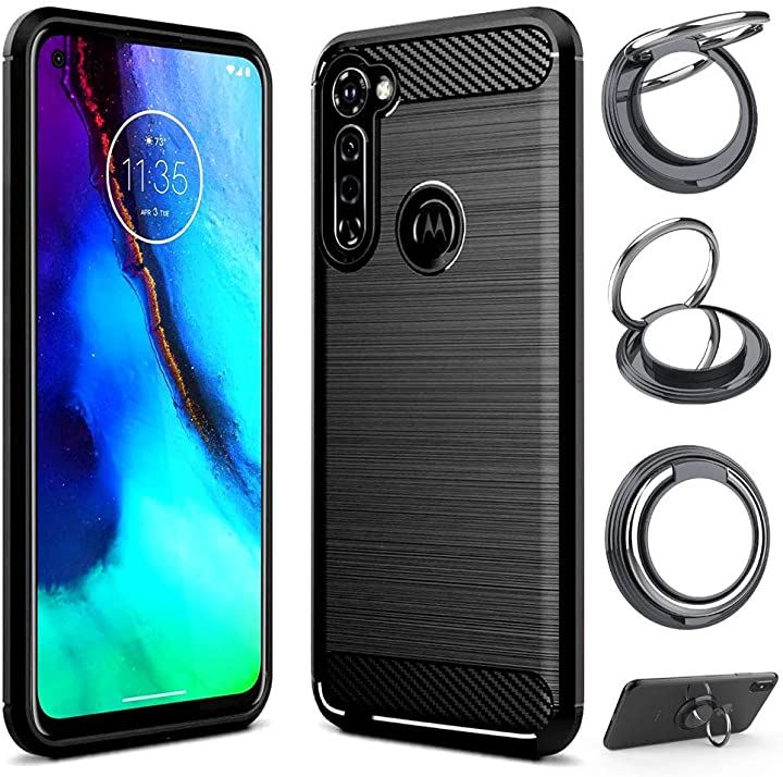 スマホリングスタンド付GTOケース カバー 炭素繊維 TPU シリコン素材を使用した 保護バンパー アンチグレア素材を使用した耐水、防指紋、散熱加工の超薄型、スタイリッシュバンパーケース ブラック