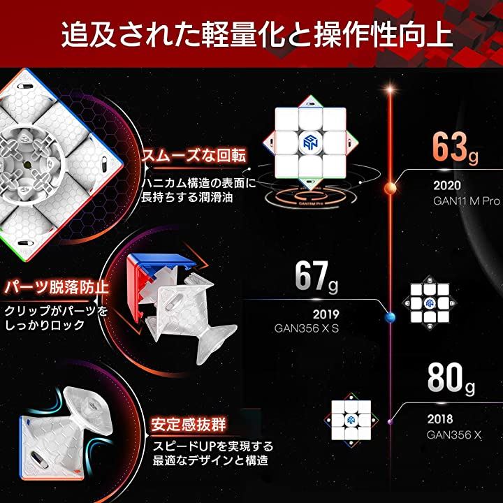 11 M pro スピードキューブ 競技用 3x3 磁石内蔵ステッカーレス クロス 日本語手順書付 ブラック
