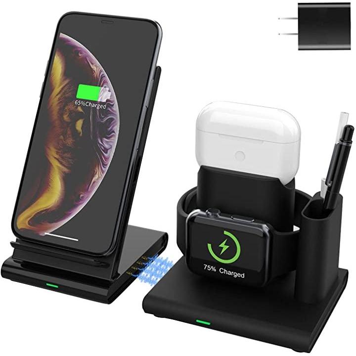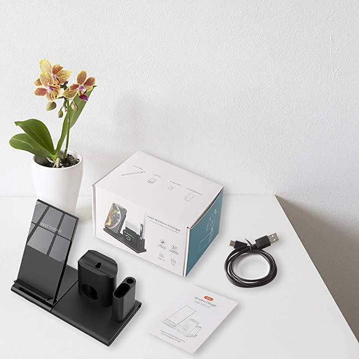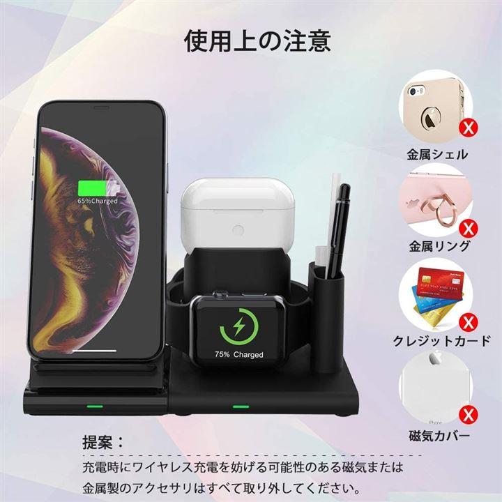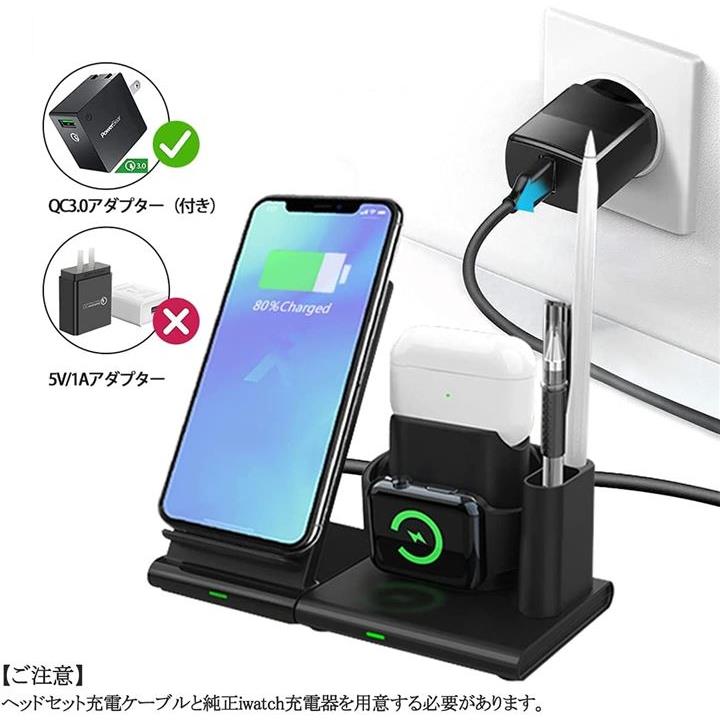 互換品SHARE BEAUTY 4in1ワイヤレス充電器 スマホ充電スタンド 分解可能 ポータブル QI認証済 iphone/Galaxyなど QC3.0アダプター付属 |