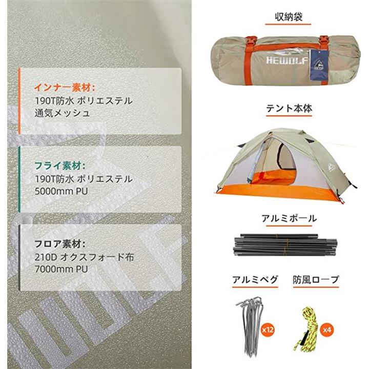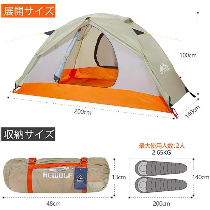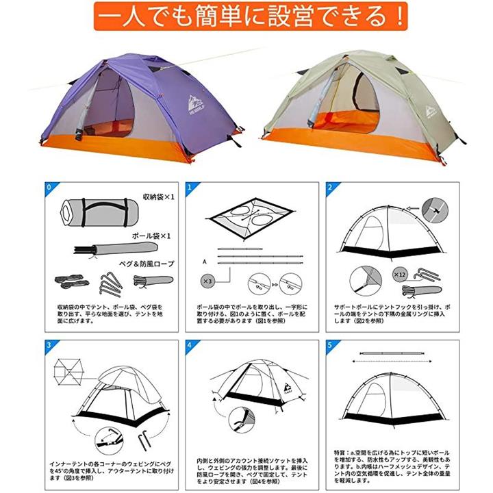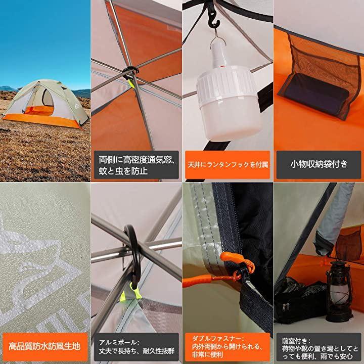 テント 1~2人用 二重層 前室あり プロ級耐水圧PU5000mm 設営簡単 超軽量2.6kg
