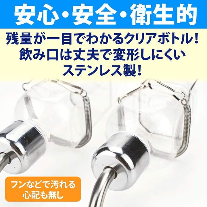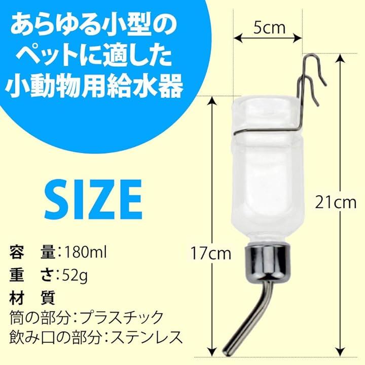 給水器 ペット用 水やり 水飲み ボトル ケージ インコ モルモット ウサギ フェレット 小動物 フック 透明 クリア 180ml