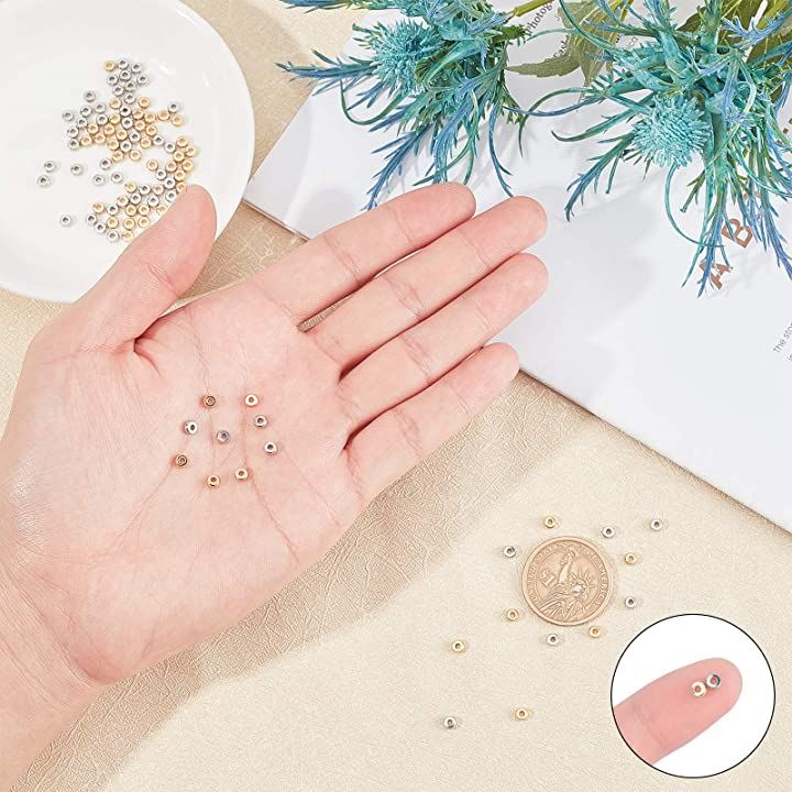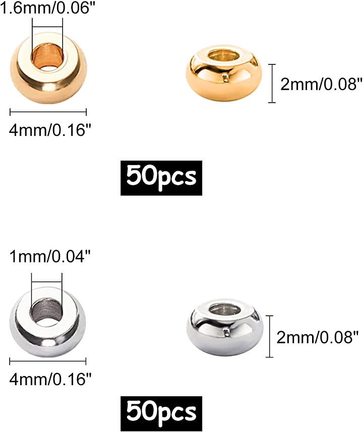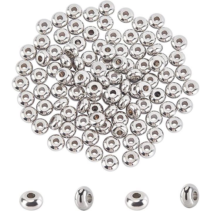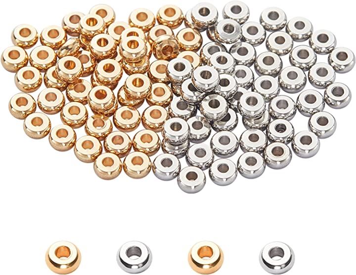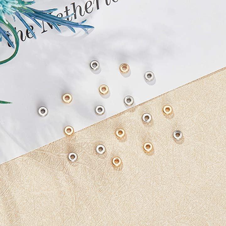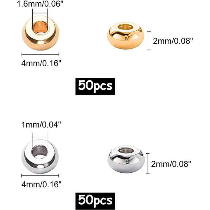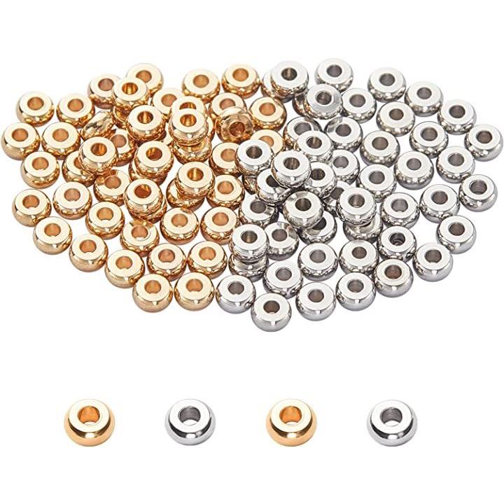 約100個 2色 4mm 円形 ロンデルビーズ 平型 ステンレス フラットラウンドビーズ