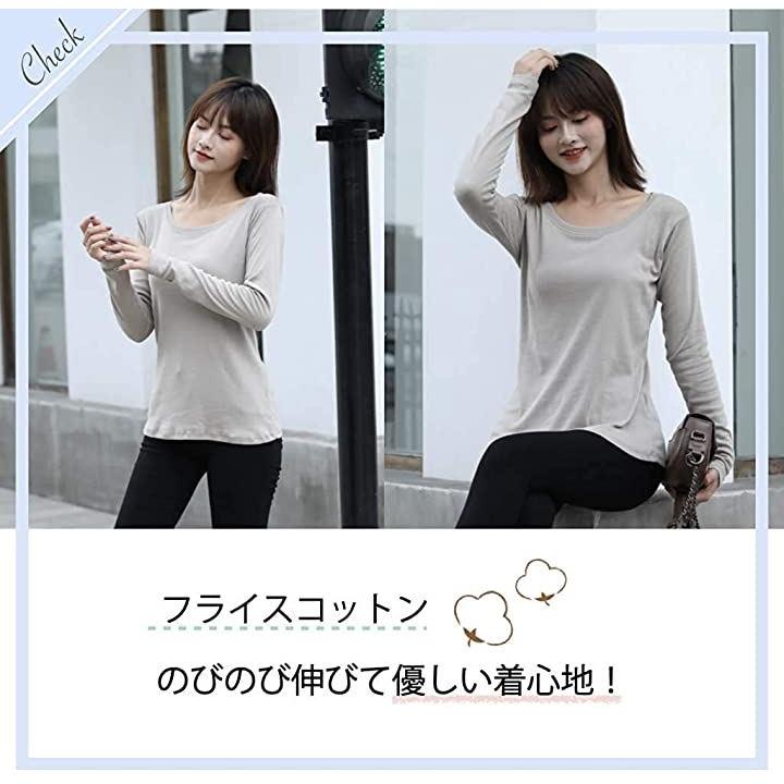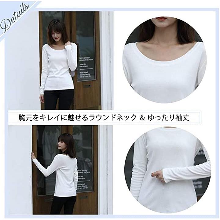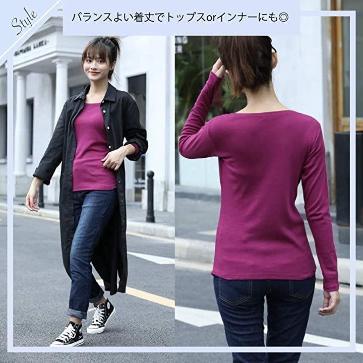 ・深めのラウンドネックと長めの袖丈でスタイル良く見せてくれるデザインです。