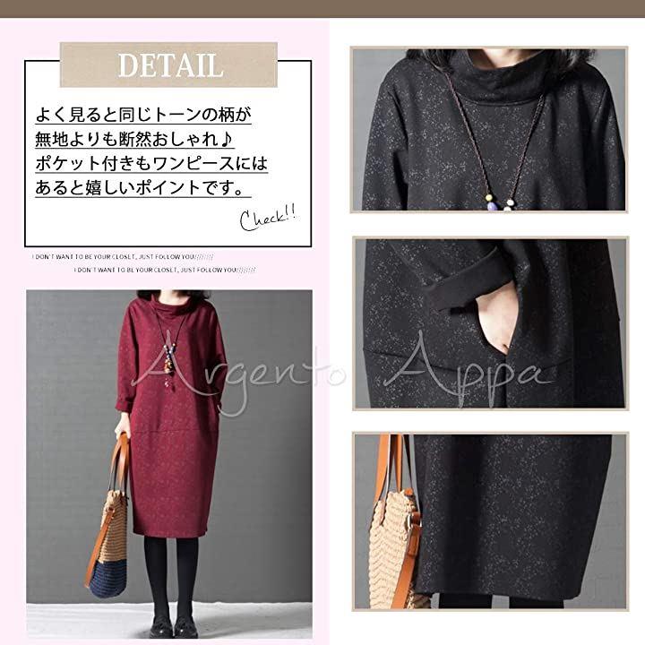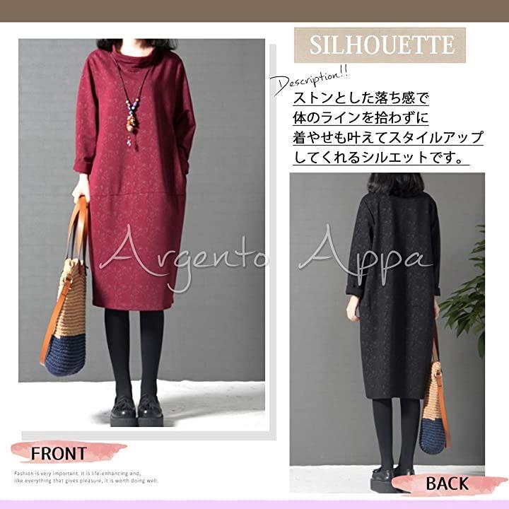 [アルジェント アパ] ワンピース 秋 冬 秋冬 長袖 膝丈 総柄 柄物 レディース シンプル M~2L(ブラック, M) |