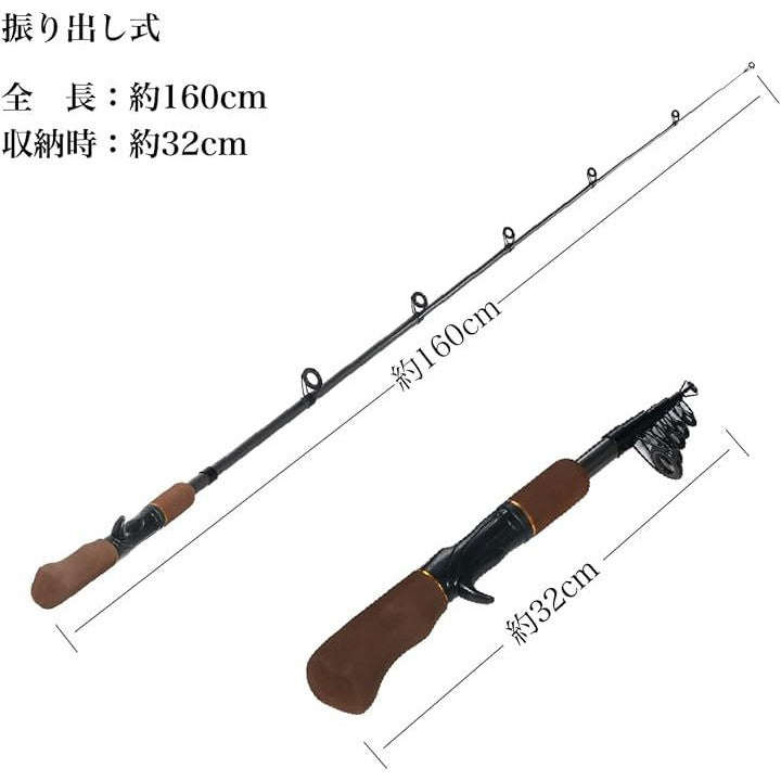 160cm コンパクトロッド ベイトロッド 収納時約32cm ルアー バス釣り 海水対応