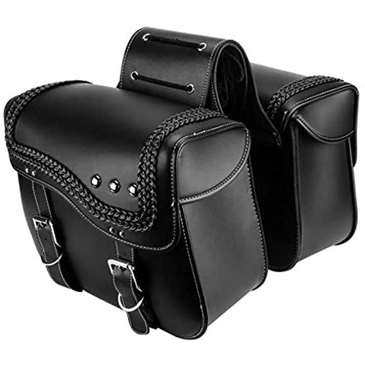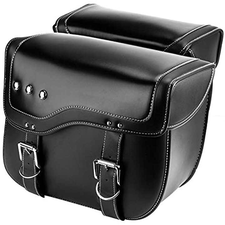 互換品バイクサイドバッグ 左右2個セット レザーバッグ パニアバッグ 汎用 アメリカン 防水 おしゃれ 黒 シンプル 柄