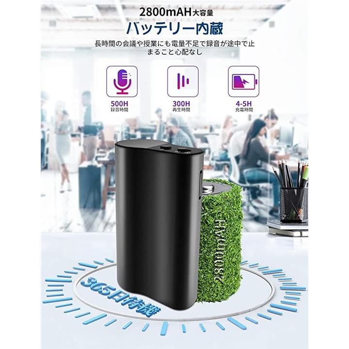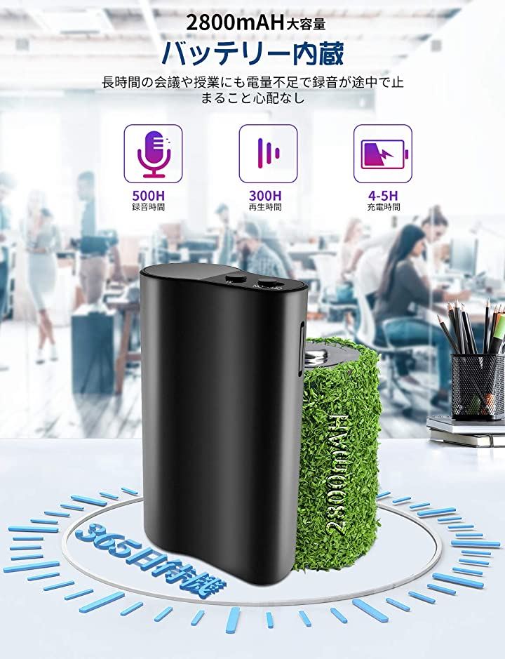 ・「500時間連続録音&16GB大容量」本ボイスレコーダーは高品質なリチウム電池が2800mAh大容量内蔵されるため、フル充電するにはただ4-5時間かかりますが、満電の場合は最大300時間の録音再生や500時間の連続録音ができますので、長時間の会議や授業するお客様にも電量不足で録音が途中で止まること心配する必要がなくなる。
