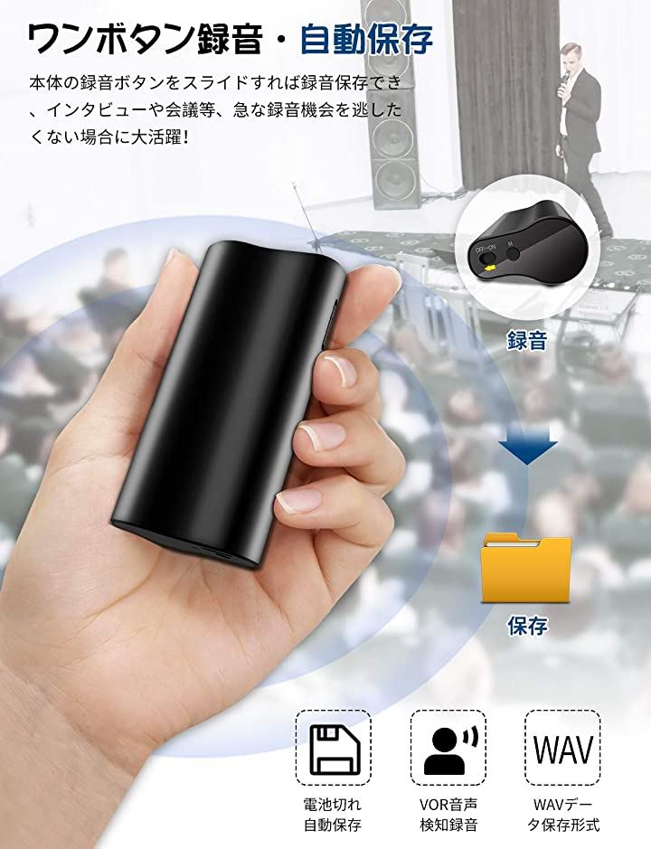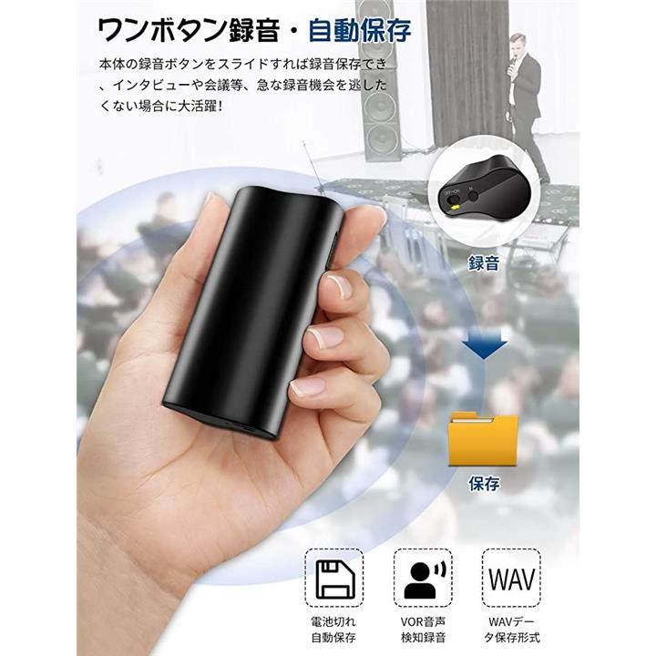・「簡単操作&ワンボタン録音&マグネット付き」このボイスレコーダーはワンボタンで録音の最新デザインを採用され、電源スイッチをスライドするだけ録音開始、保存するを実現する設計になっています。